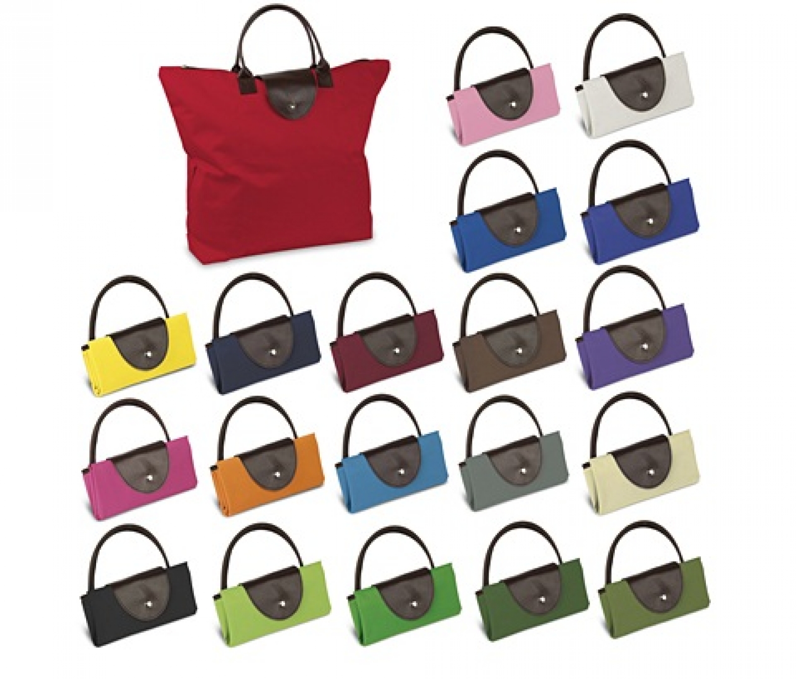 Bolso plegable con agarraderas de mano, cierre con broche y cremallera.