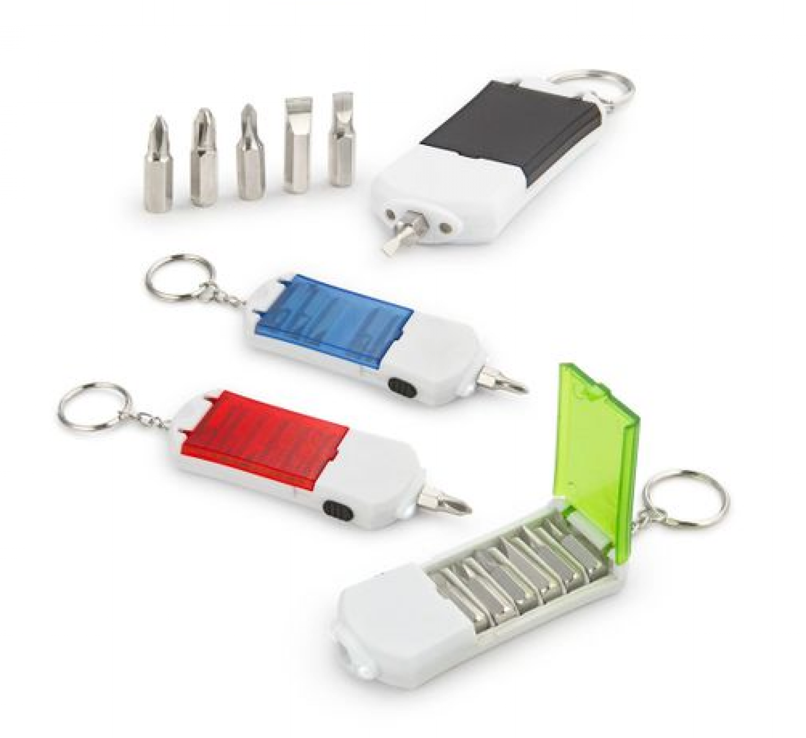 Llavero con linterna LUZ LED y 6 puntas de destornillador: 3 tipo phillips y 3 tipo pala.