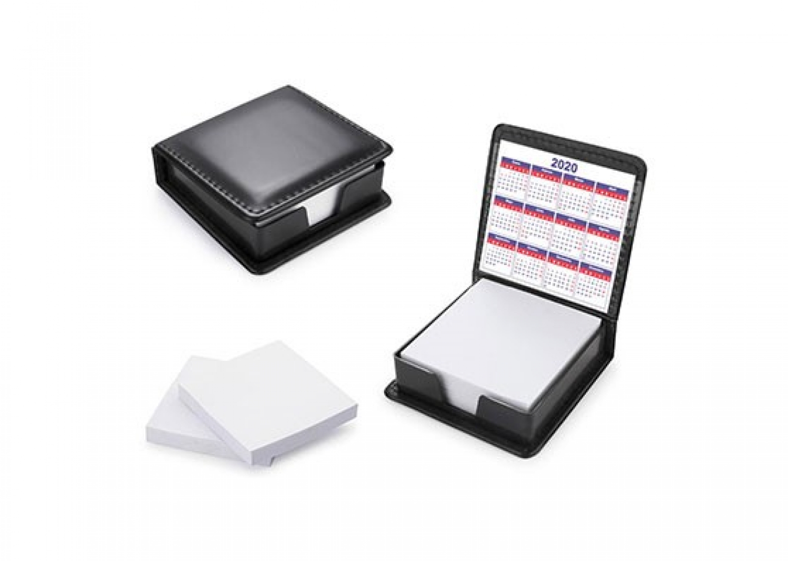 Set de 2 tacos de memos adhesivos color blanco de 100 hojas cada uno. Incluye calendario 2019 - 2020 y estuche con tapa sintética.