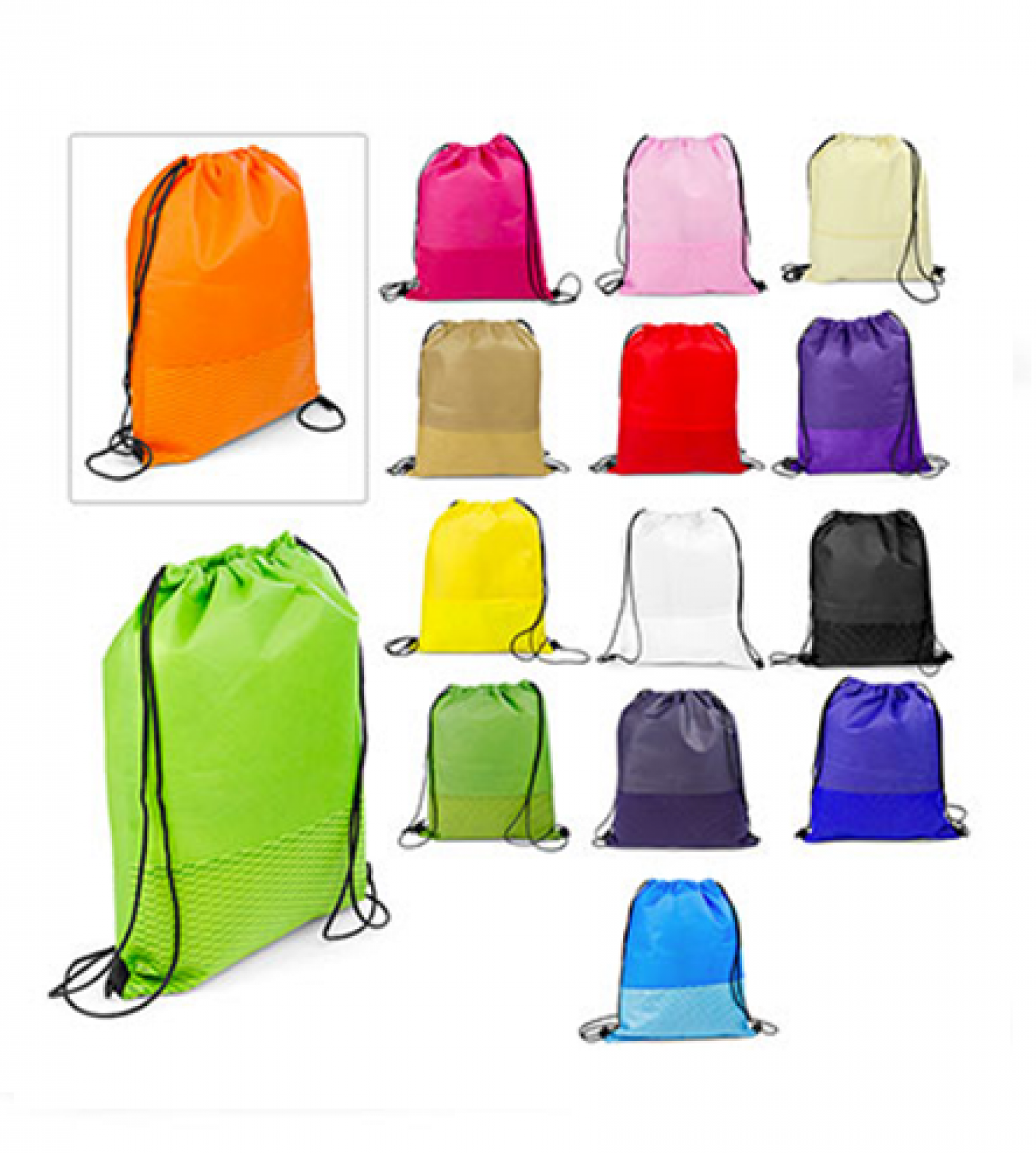 Mochila ecológica con doble cordón para ajustar que sirven como cargaderas.