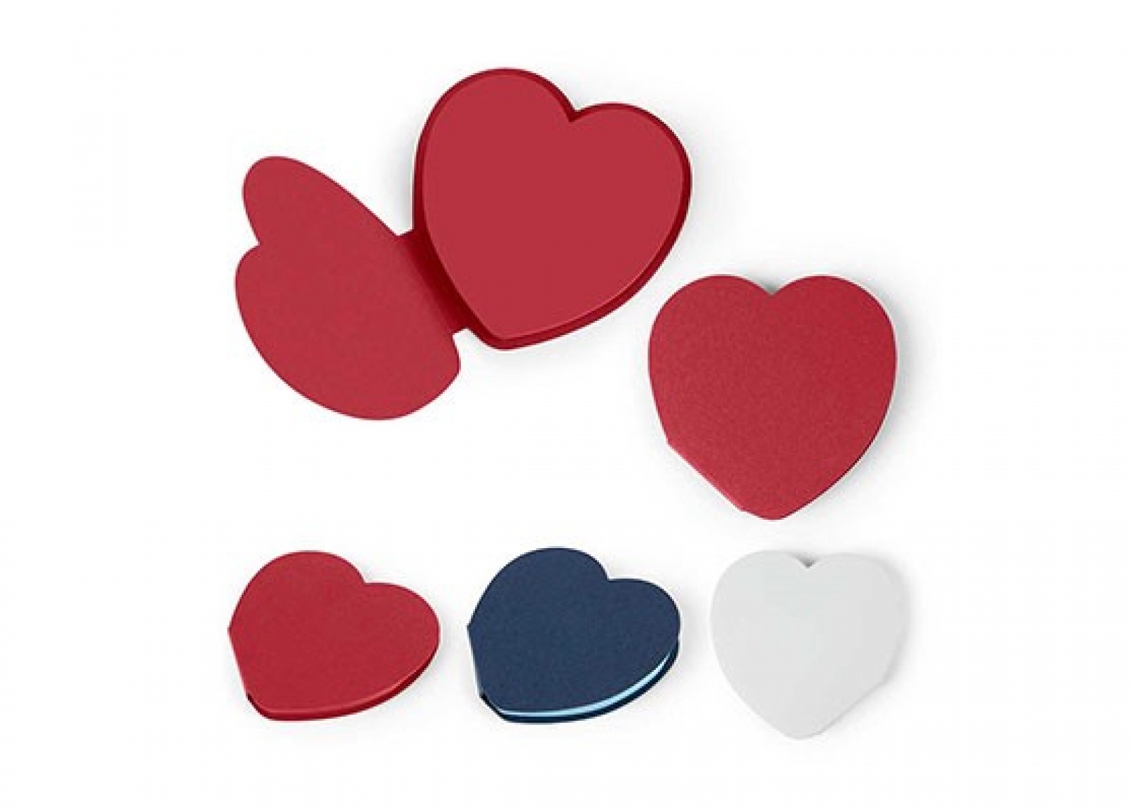 Memo en forma de corazón con 50 notas adhesivas del mismo color de la cubierta