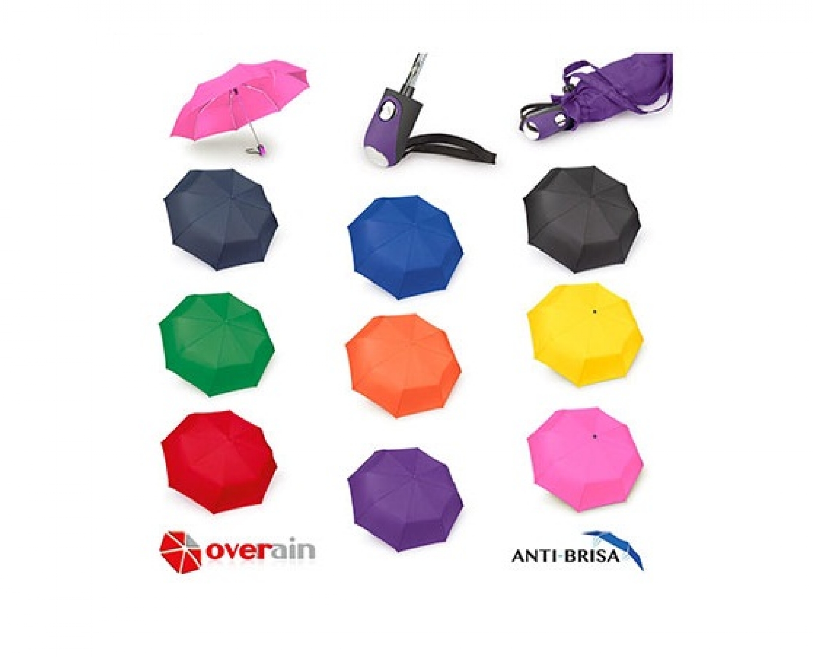 Paraguas 3 secciones de apertura automática y cierre manual. Antibrisa. Funda en la misma tela del paraguas con cordón ajustable.