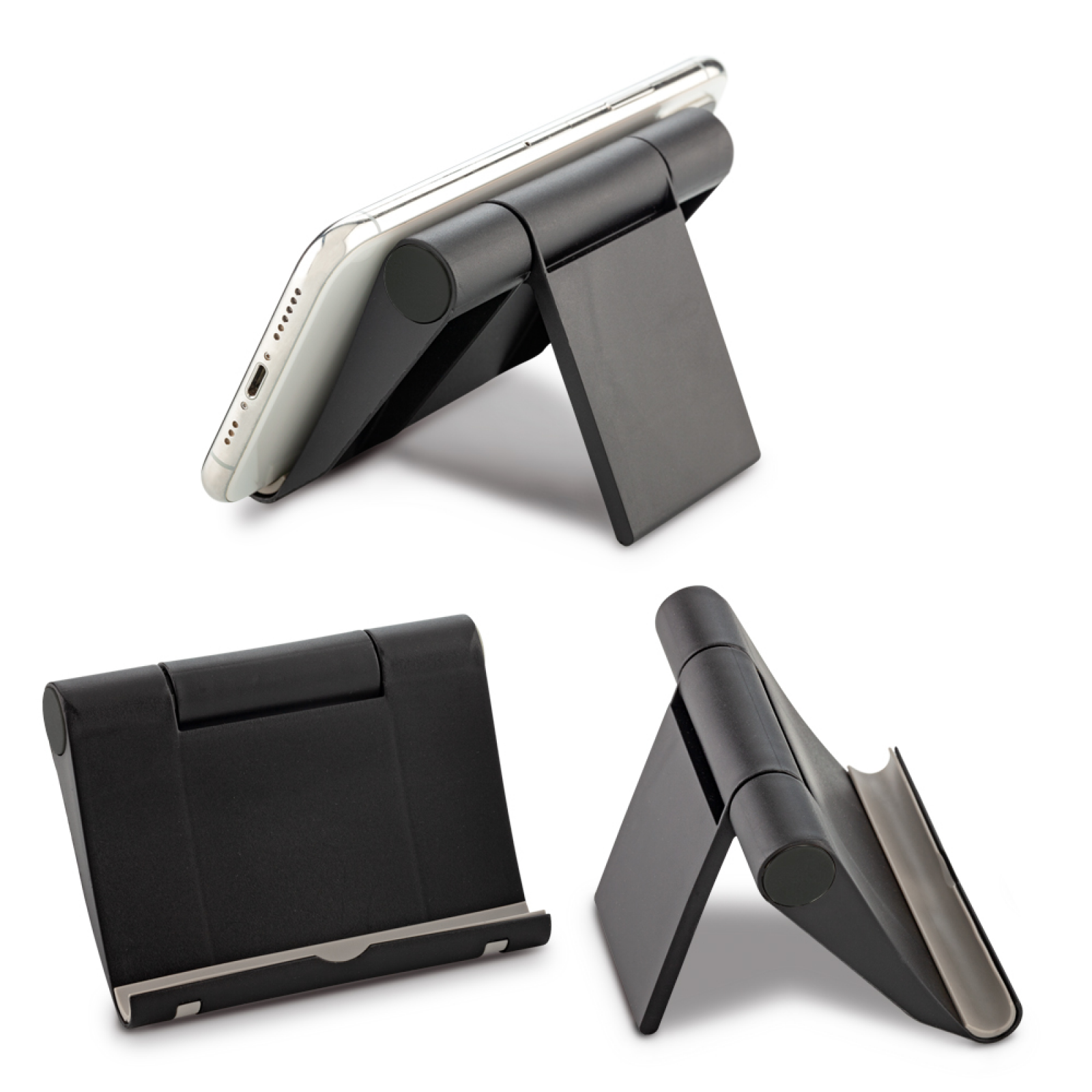 Soporte plástico para móviles y tablets. Altura ajustable.Empaque caja individual